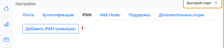 Необходимо нажать кнопку «Добавить IPAM провайдер» (1).