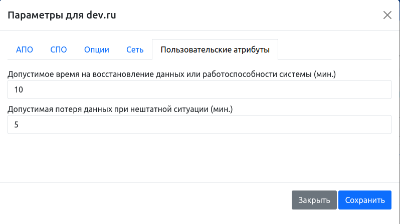 Вкладка «Пользовательские атрибуты»