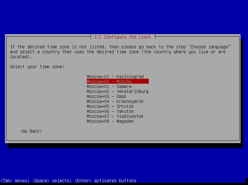в полуавтоматическом режиме: временная зона не задаётся. Она будет задана впоследствии при настройке SpaceVM;