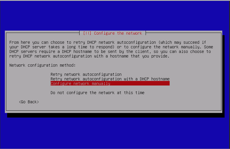 На этапе ввода названия хоста (Hostname) можно вернутся к ручной настройке статического IP-адреса сервера. Для этого