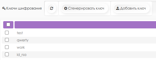 Для удаления ключей шифрования необходимо выделить нужные с помощью "чек-боксов" и нажать на кнопку Удалить.