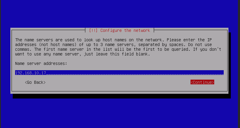 Задать имя хоста в меню конфигурации сети и нажать <Continue>.
