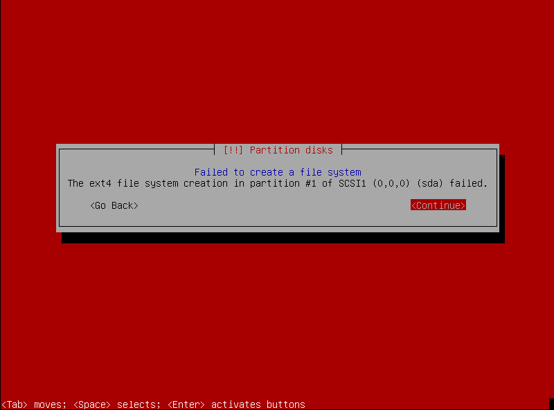 В случае ошибки на этапе установки базовой системы или разбивки диска необходимо перезагрузить систему в режиме