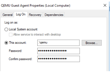 настроить запуск службы qemu-guest-agent не от учетной записи в локальной системе, а от ранее созданной учетной записи.