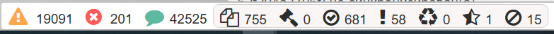 При регистрации в системе ошибок или предупреждений во время выполнения операций в нижнем окне интерфейса появляются соответствующие индикаторы. Цифра рядом с индикатором указывает на количество соответствующих событий.