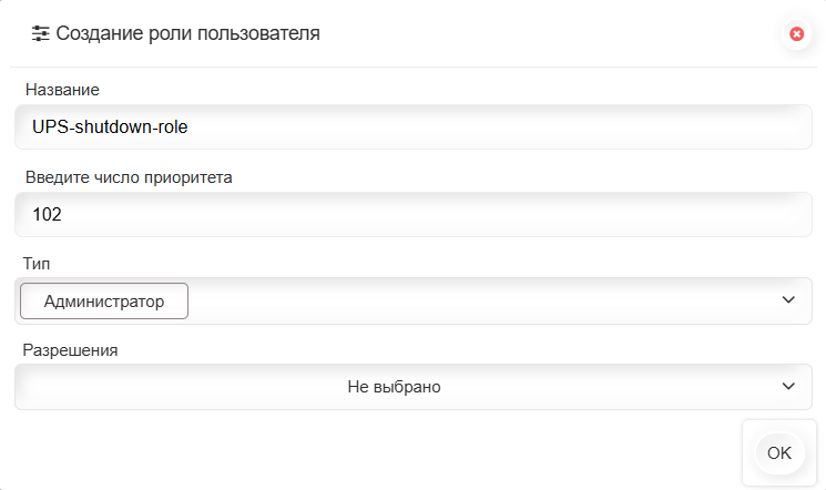 Логин пользователя UPS-shutdown-role приведен в качестве примера. Допускается иное именование.