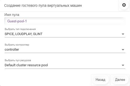 При создании гостевого пула все ВМ ВСЕГДА будут являться тонкими клонами шаблона. ВМ имеют ограничения по используемым пулам данных. Подробнее можно ознакомиться в разделе Типы пулов данных.